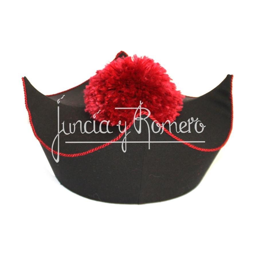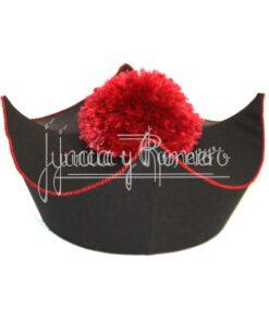 BONETE ESPAÑOL LANA NEGRO CON RIBETE BURDEOS Y BORLA BURDEOS