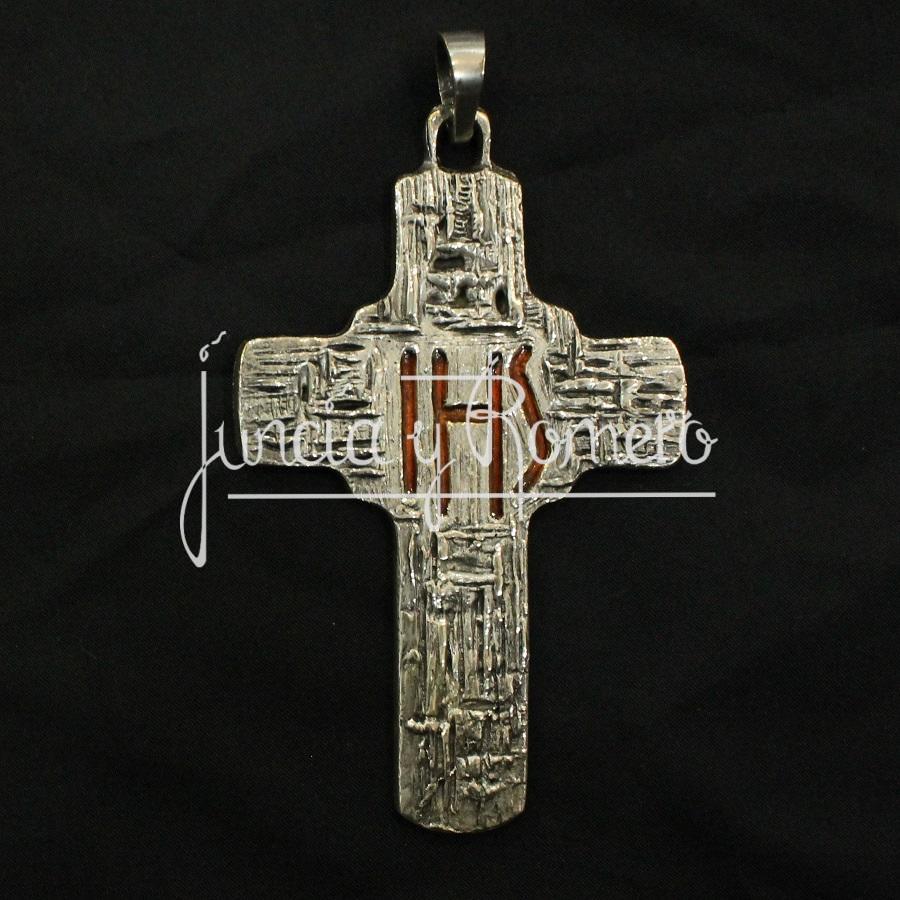 CRUZ PECTOTAL EN METAL CON BAÑO DE PLATA , 9,5 X 7CM